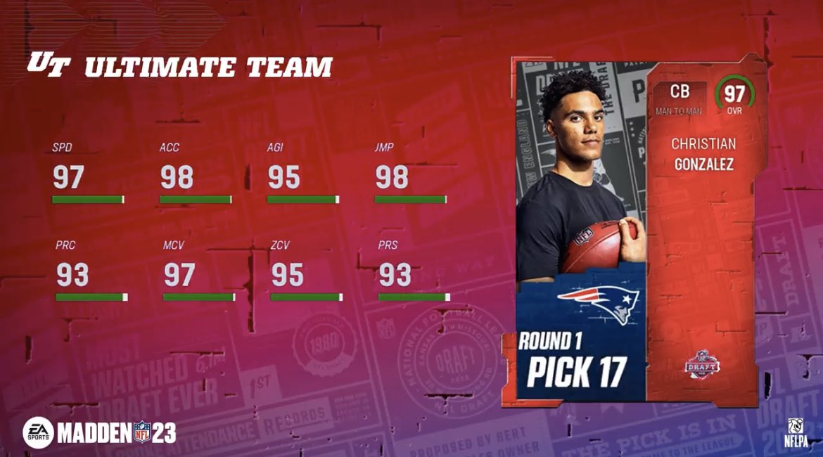 - 97 Christian Gonzalez | CB | Patriots