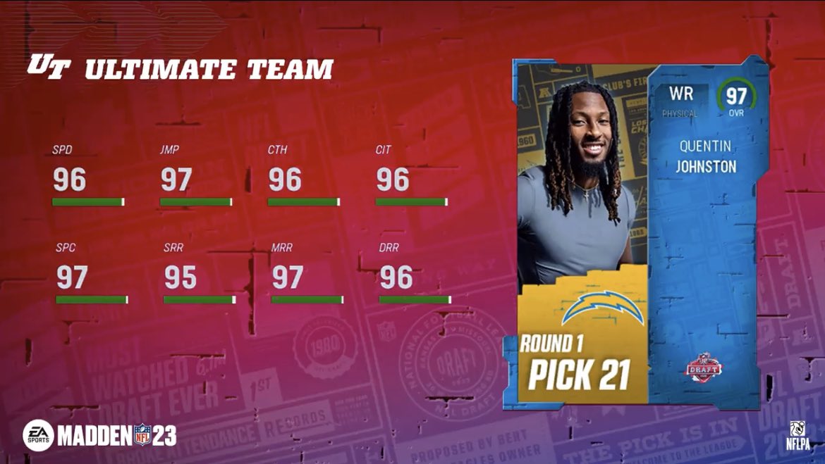 - 97 Quentin Johnston | WR | Chargers