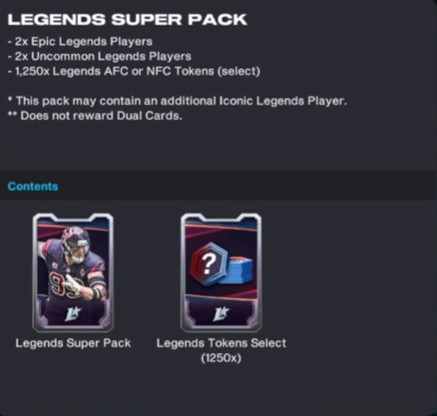 - 4x Rare Legends AFC Players + 465x Legends AFC Tokens -> 1x Random Epic Legends AFC Player