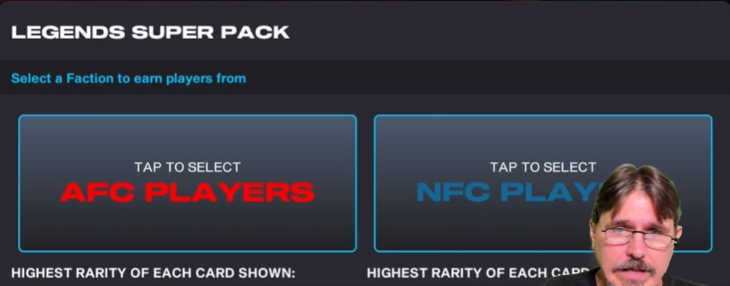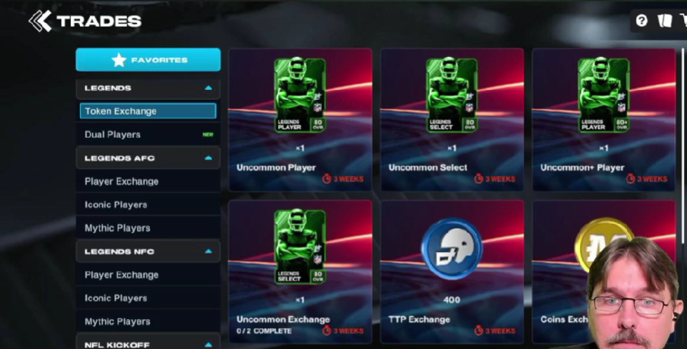 - 5x Rare Legends AFC Players + 1000x Legends AFC Tokens -> 1x Select Epic Legends AFC Player