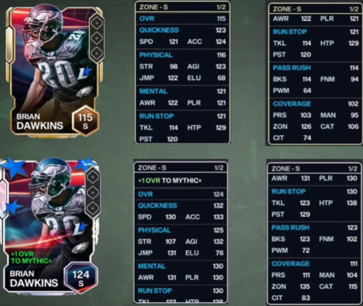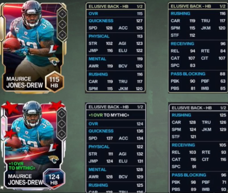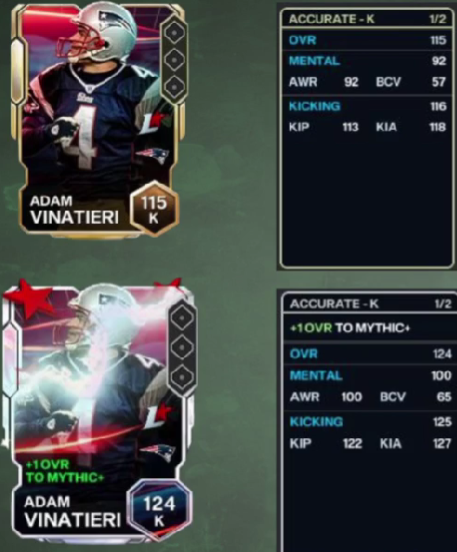 - Mythic Player OVR = 124 OVR