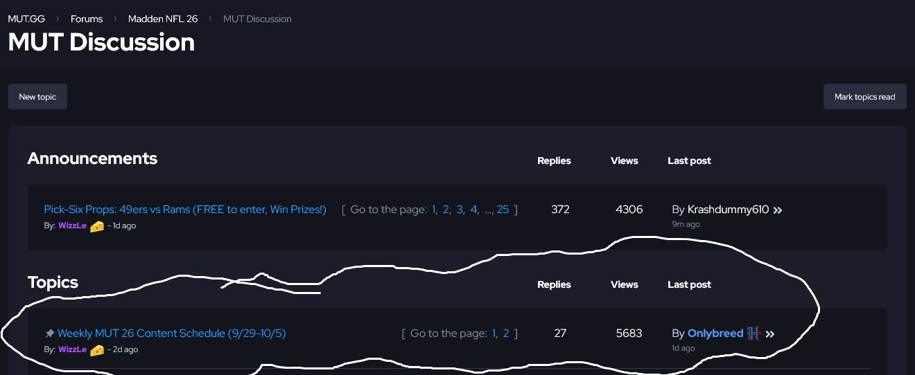 The pinned post at the top has the schedule listed