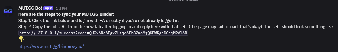 You’ll receive a DM from the MUT.GG BOT with the following instructions: