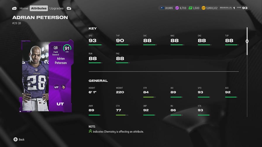 When logging into Madden Ultimate Team today, you will receive a Welcome Pack containing 91 OVR QB Adrian Peterson. From now until Friday, April 4th, QB Adrian Peterson comes with 6 custom buckets containing multiple 0 AP abilities. Along with the temporary AP discounts, QB Adrian Peterson receives temporary +25 ratings boosts to all key ratings until Friday, including a 10-inch boost to his height! If you add Season 7 HB Adrian Peterson to your lineup, he will receive the temporary ratings boosts until they expire as well! Check out QB A.P. below: