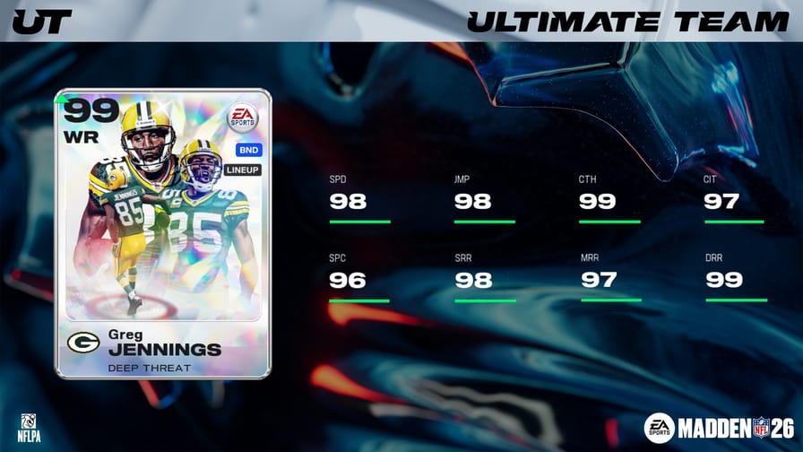 While most players need 2 good legs to play football, legend has it that former Packers WR Greg Jennings only needed 1 good leg to put the team on his back, though. From now until Monday, April 6th, log into MUT to receive a FREE Greg Jennings with temporary ratings boosts to 99 OVR. Once his leg has fully healed on Monday, his boosts will be removed, and his OVR will decrease to 91.
