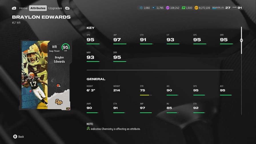 - Pair with his college teammate Rome Odunze to unlock the following boosts for both players: +1 JMP, +1 SPM, +1 SPC, +1 CIT, +1 SRR