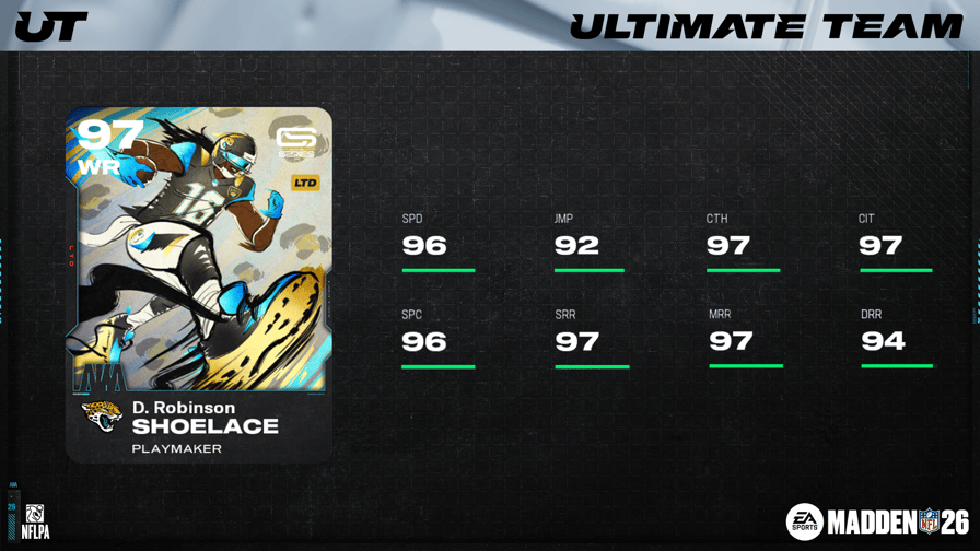 The second release of the AKA series went live this afternoon with Denard "Shoelace" Robinson, Tim "Mr. Raider" Brown, and Richard "Night Train" Lane. LTD Denard Robinson's default position is WR, but for the first time in MUT that we can recall, the WR comes with QB secondary position chemistry!