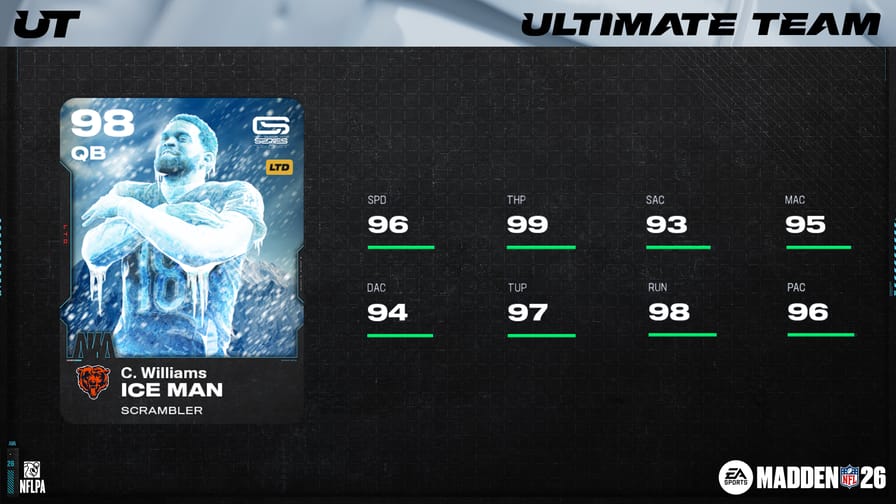EA revealed the final release of this season's AKA series theme, scheduled to go live at 1:30pm ET on Monday, March 16th. The final 3 players in this series are LTD Caleb "Ice Man" Williams, Dion "The Shnowman" Dawkins, and Brian "The Boz" Bosworth. Since this is the final release of the AKA series before we get a new theme in Season 7, collecting every AKA Champion in a set will reward a new 97 OVR version of a previously released AKA LTD player.