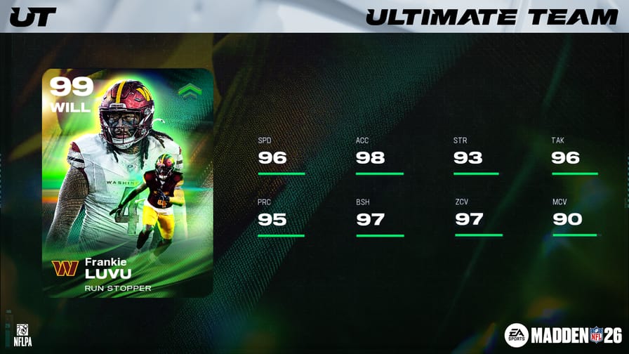 Team Builders release #8 of the year went live in MUT today. Headlining the new content drop are 99 OVR TB8 Champions Kingsley Suamataia (LG) and Frankie Luvu (WILL), who both come with all 32 NFL Team Chemistries. A 98 OVR Champion represents each of the 8 NFL Divisions, while a 95 OVR Hero represents each of the 32 NFL Teams. Check out the new players in our database below: